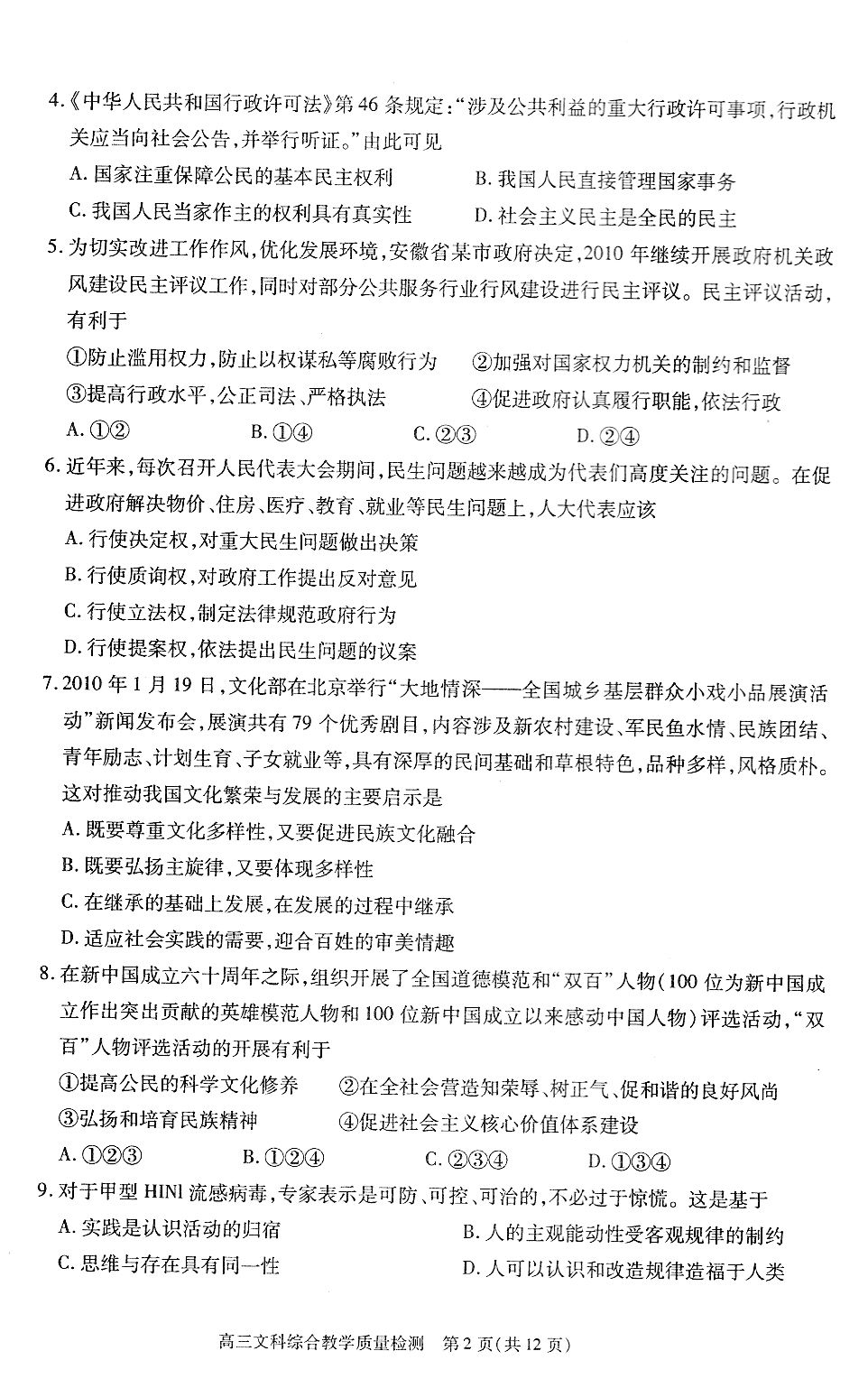 安徽高考][组图]2010年合肥市二模文综试题答案