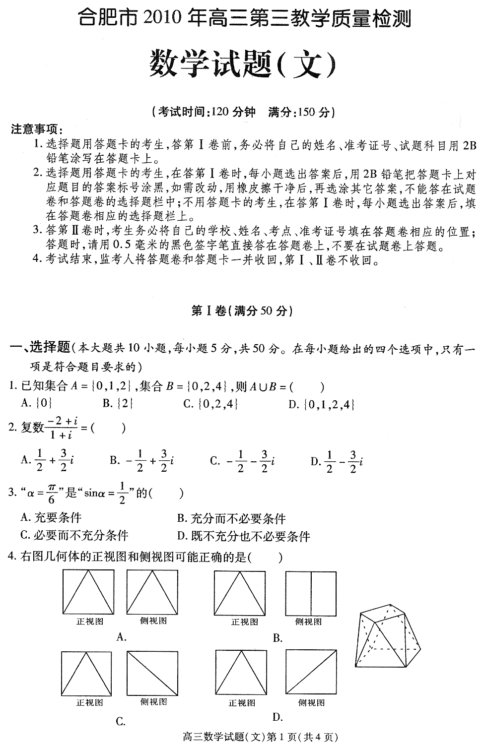 [组图]2010年合肥三模数学文科试题