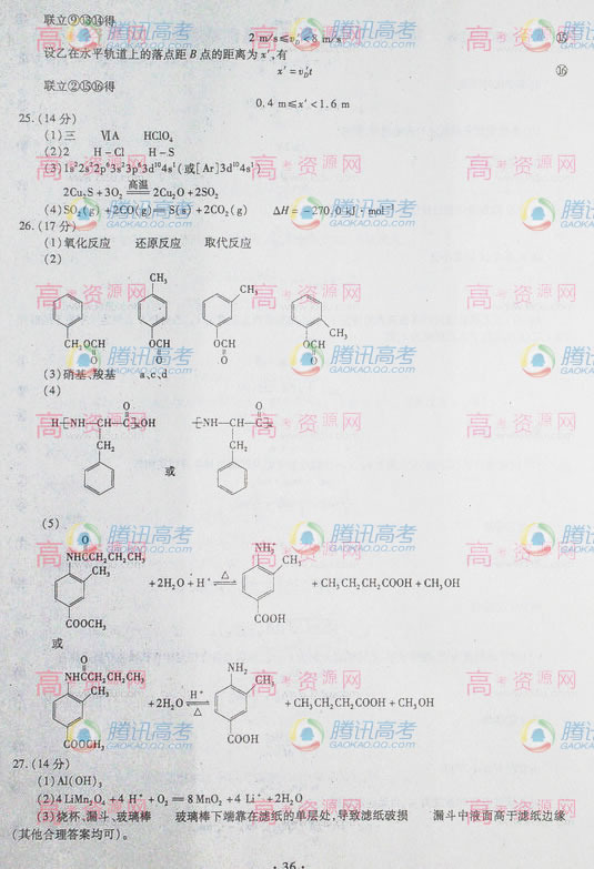 [组图]2010年安徽高考理综试题卷答案