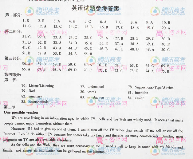 [图文]2010年安徽高考英语试题试卷答案