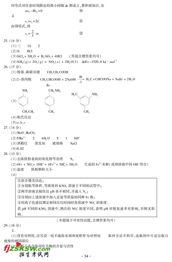 [组图]安徽2011年高考理科综试题答案