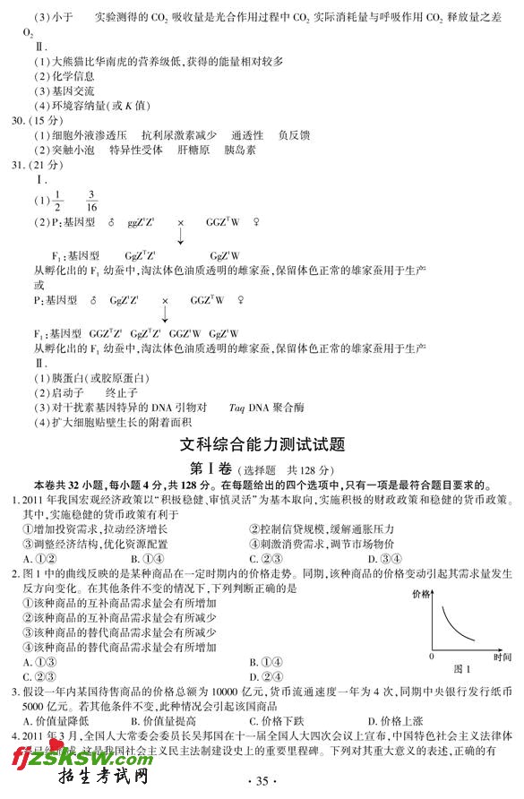 [组图]安徽2011年高考文科综试题答案