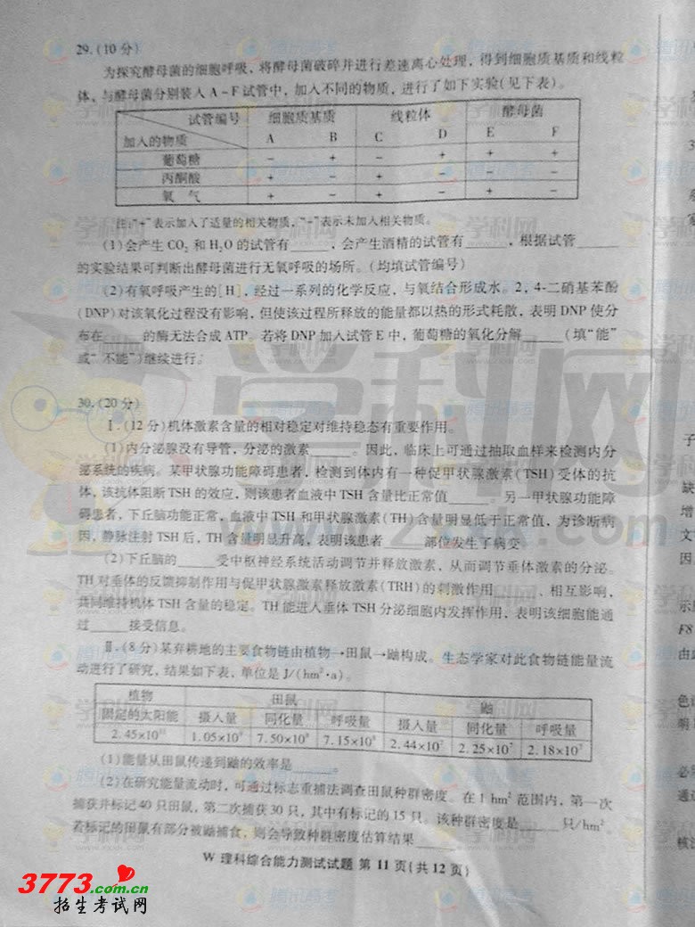 [组图]2012安徽高考理综卷试题及答案(理科综合)