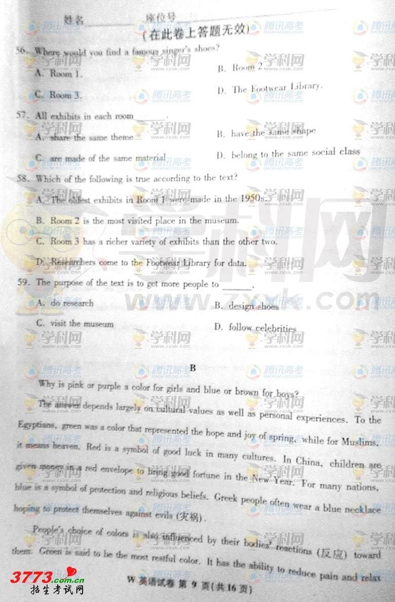 [组图]2012年安徽高考英语试题答案发布