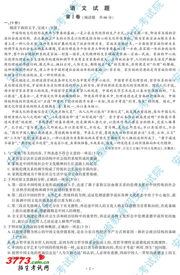 [组图]2012年安徽高考考试试题参考答案(语文)