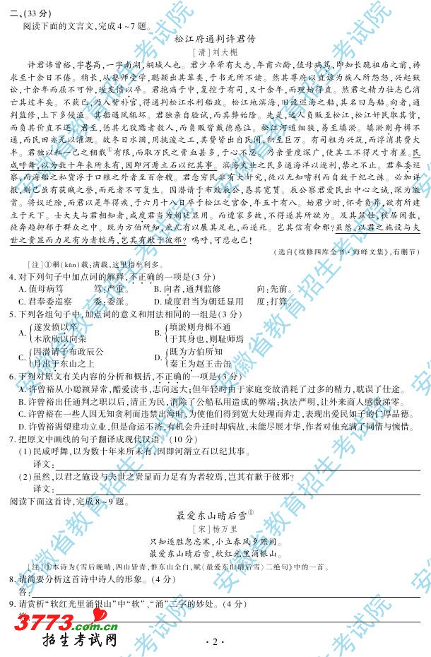 来源:安徽省教育招生考试院 2012-6-8 22:41:58