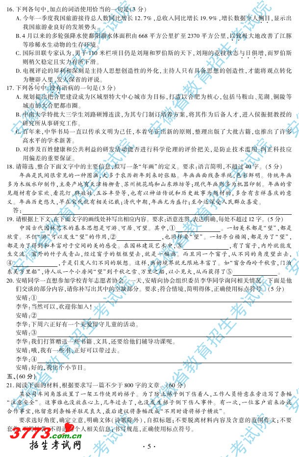[组图]2012年安徽高考考试试题参考答案(语文)