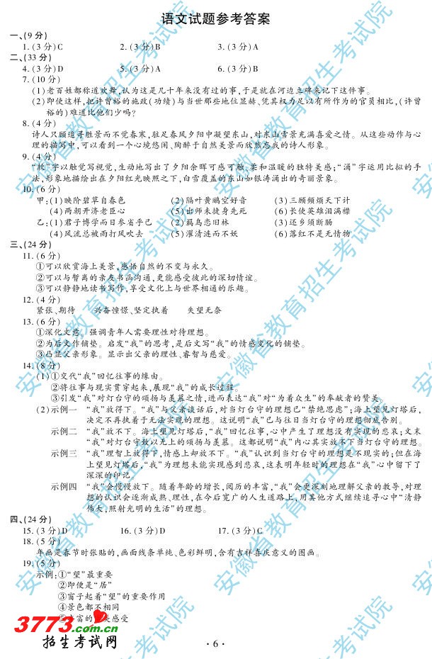 [组图]2012年安徽高考考试试题参考答案(语文)