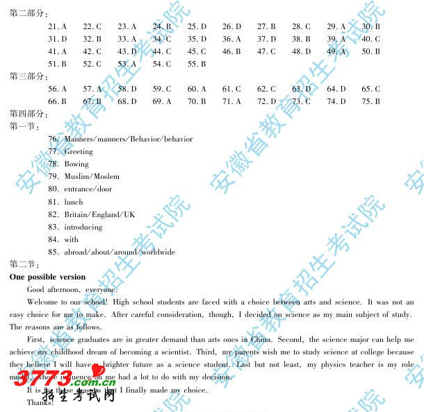 来源:安徽省教育招生考试院 2012-6-8 22:44:18