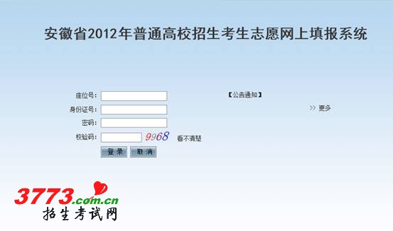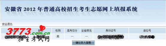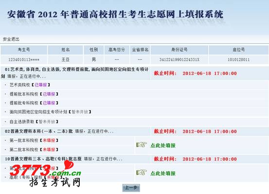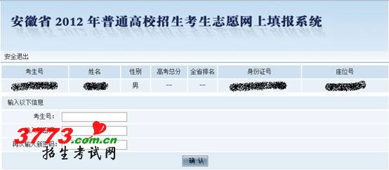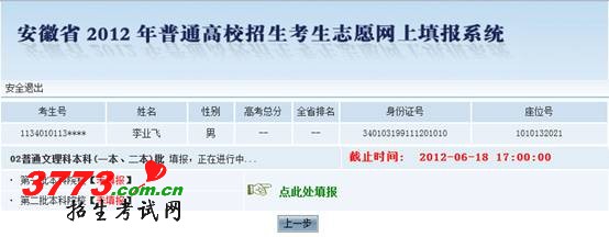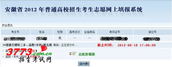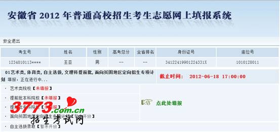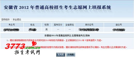 安徽省2012年普通高校招生(含对口招生)考生志愿网上填报操作说明