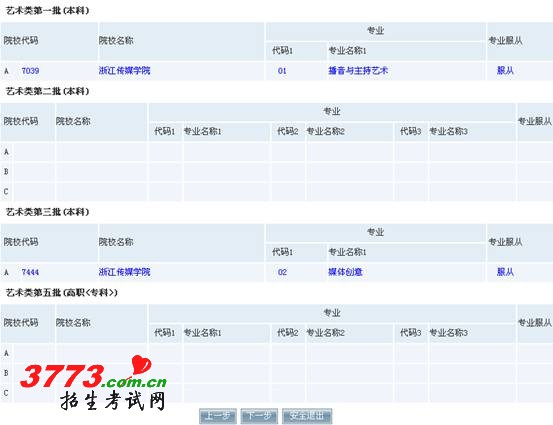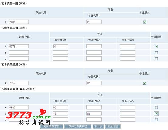 “放弃艺术类院校”按钮:放弃艺术类院校志愿,不填报艺术类的院校。一旦放弃,考生将不能被该类院校录取,请慎重操作。