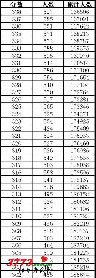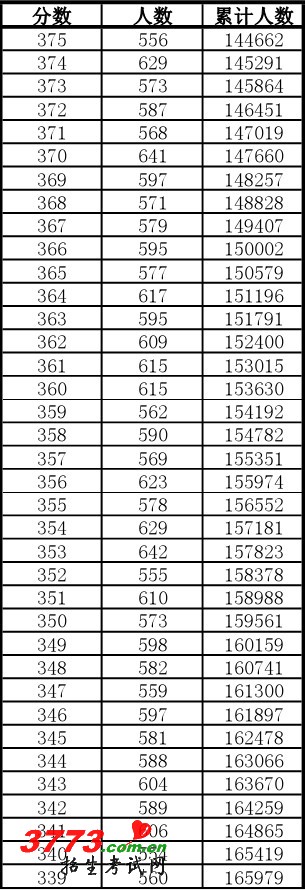 [组图]2012年安徽高考一分一段表已公布(文科)