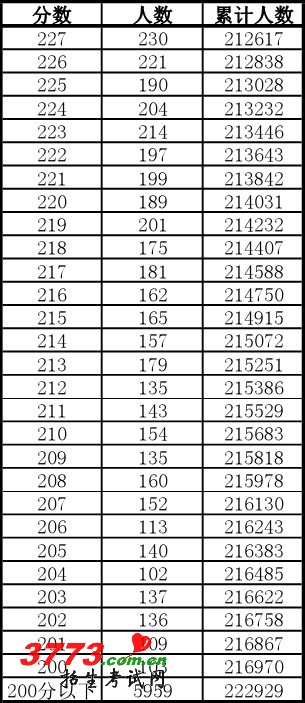 [组图]2012年安徽高考一分一段表已公布(文科)
