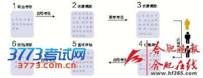 6月30日至7月2日,考生携带本人身份证、准考证和政治考核表等相关证件和材料,在规定日期前往指定面试体检地点空腹参检。具体面试体检时间安排,将在6月28日安徽招生考试网(www.ahzsks.cn)公布面试体检控制分数线时一并公布。