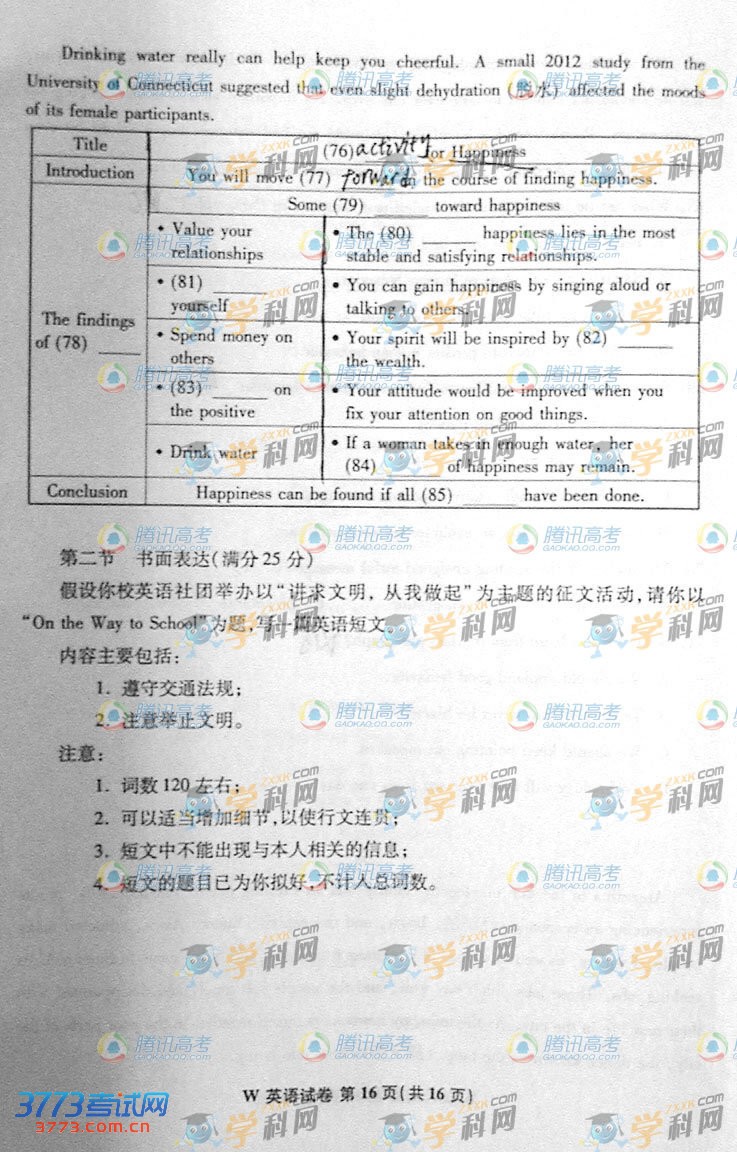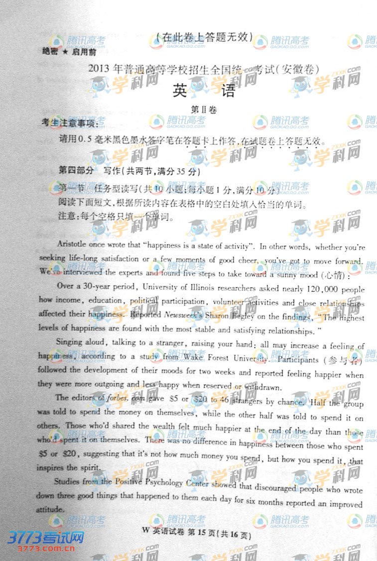 [组图]2013安徽高考英语试题及答案(参考)