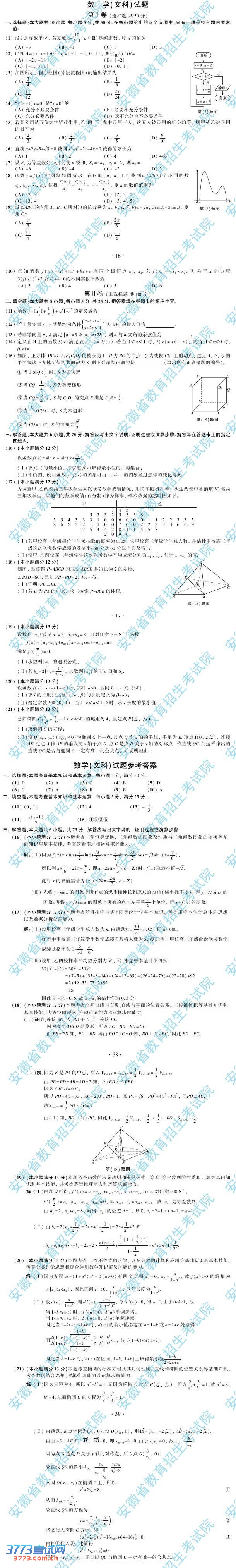 2013安徽高考数学文科试题及答案