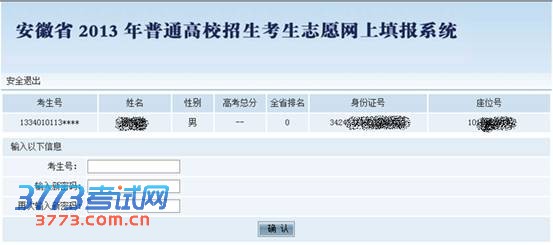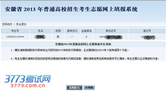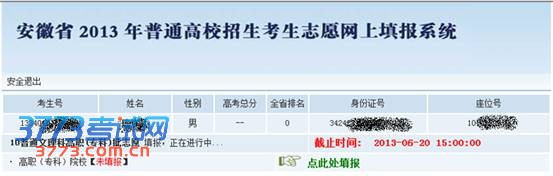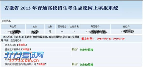 安徽省2013年普通高校招生(含对口招生)考生志愿网上填报操作说明