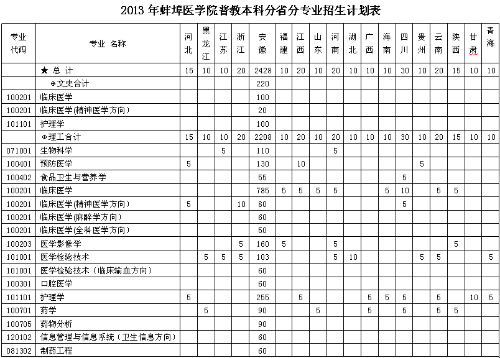 [图文]2013年蚌埠医学院普教本科分省分专业招生计划表