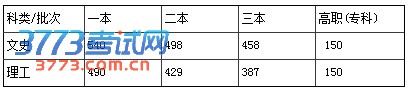 文史、理工类最低控制分数线一览表