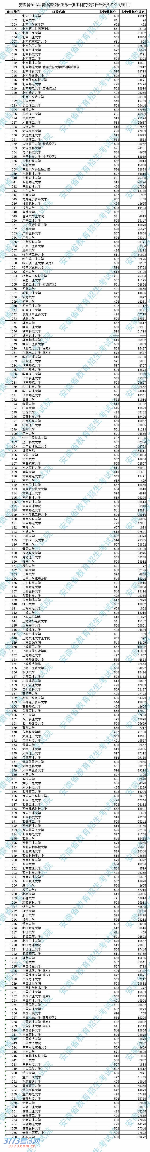 [图文]2013安徽高考一本院校投档分数线及名次(理工)