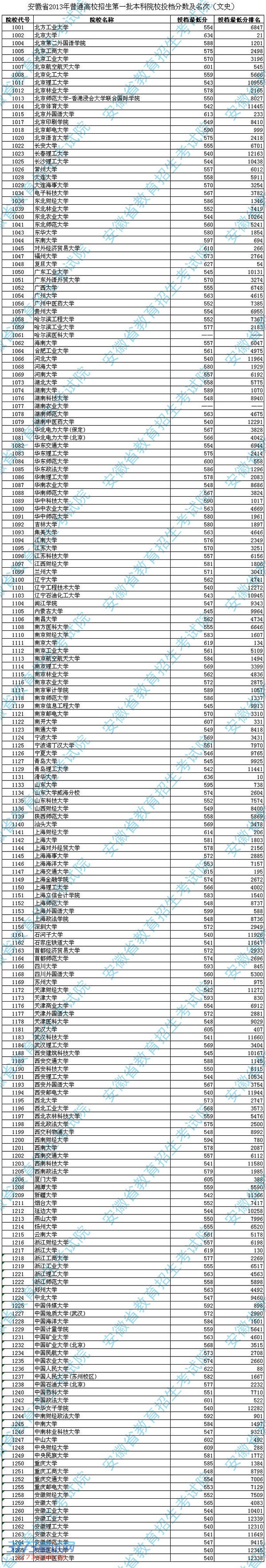 [图文]2013安徽高考一本院校投档分数线及名次(文科)