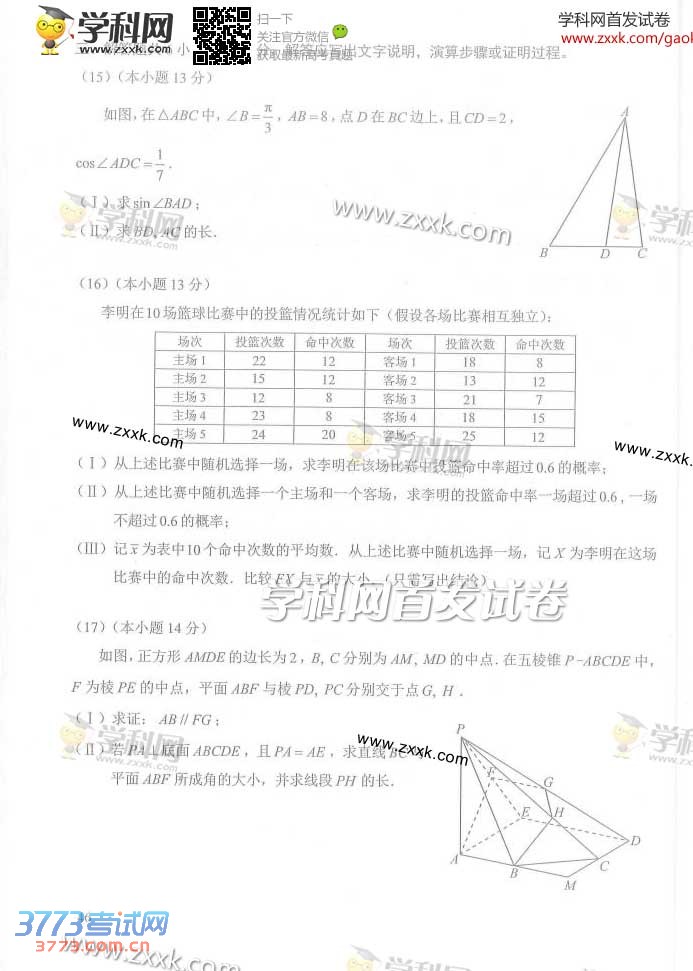 [组图]2014北京高考数学理科试题及答案