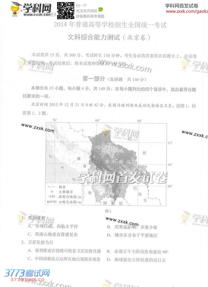 [组图]2014北京高考文综试题及答案发布