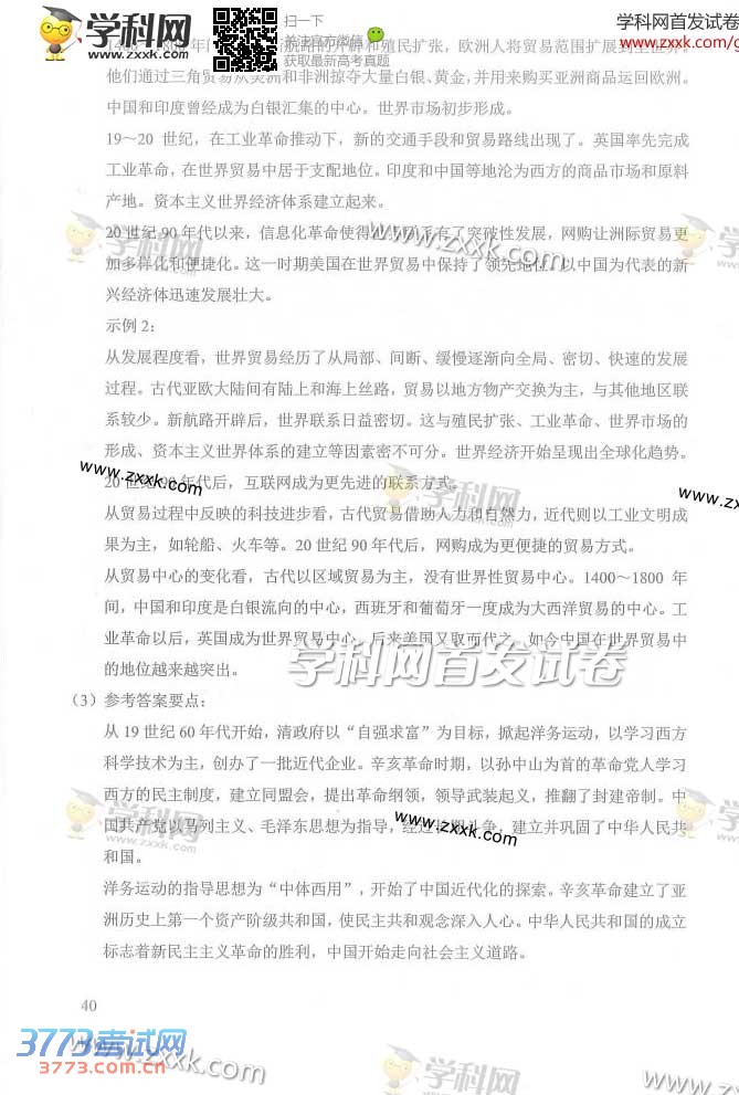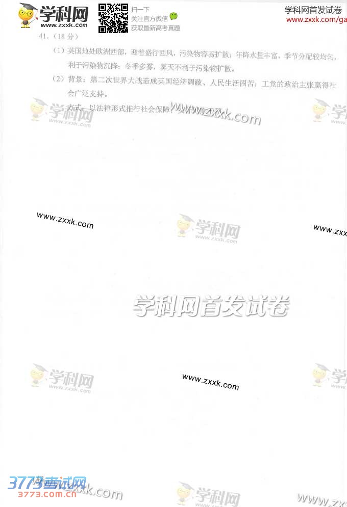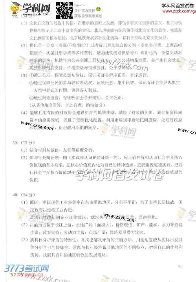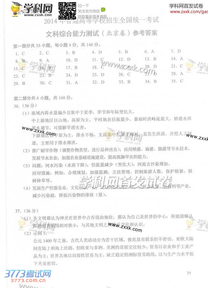 [组图]2014北京高考文综试题及答案发布