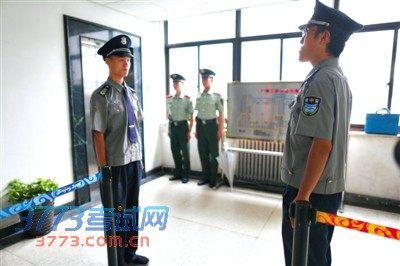 北大计算中心高考阅卷室门口,有保安和武警站岗。 新京报记者 浦峰 摄