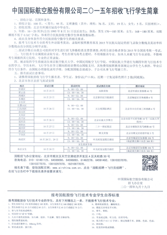 [图文]中国国际航空股份有限公司2015年招收飞行学生简章