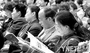 询现场考生家长认真翻看《招生简章》(摄影/记者耿蕾)