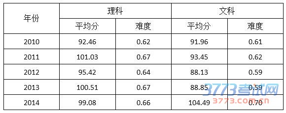 从表中可以看出,北京市高考数学平均分变化整体比较平稳,其中理科数学13至14年平均分基本持平。