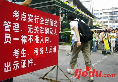 根据规定,今年高考语文、数学、文综、理综开考15分钟后,考生不得进入考点(外语开考前15分钟禁入考点)。与往年不同的是,不得进入“考场”改为了不得进入“考点”。考试院有关负责人表示,将“考场”改为“考点”后,避免了以往迟到考生进入考点但不能进入考场的情况,使考务管理更为规范和严格,同时也提醒考生确保在规定时间里进入考点。