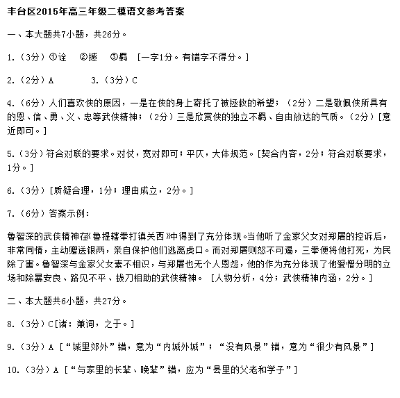 [组图]2015北京丰台二模语文试题答案