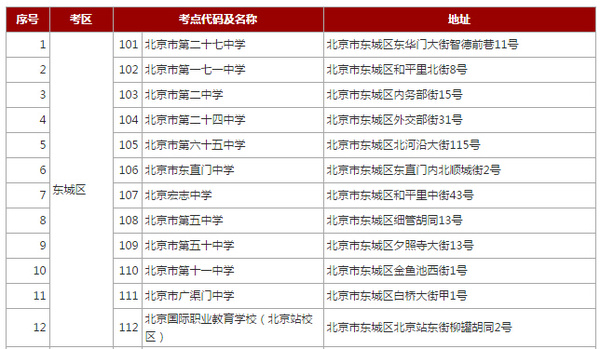 [组图]2015北京高考考点安排及地址表