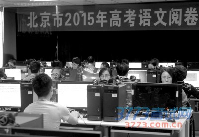 昨天,在北京大学高考阅卷点,阅卷教师正在评阅语文试卷。