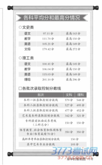 臧铁军透露,各学科平均分有升有降。如语文学科今年的小作文“三选一”,大作文首次“二选一”,并且没有“诗歌除外”的限制,总体上有利于考生的发挥,各层次考生都能抓住要点,作文总体发挥情况较好,满分作文比去年多。