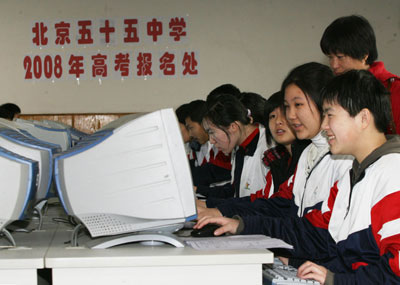 资料图片:2008年北京高考报名工作日前结束,图为高考网上报名现场。