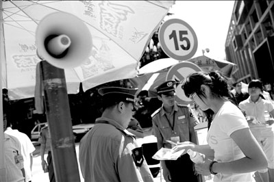 13日,一名考生出示证件,准备参加外语口试。当天,3.6万名北京考生参加了今年的高考外语口语考试,和去年相比下降8000人。由于目前正处于甲流流行时,今年在每个考点首次使用了发烧考生备用考场。昨天没有接到异常报告。各考点也表示没有启用备用考场。