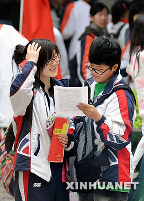 资料图片:2008年4月8日,考生们在南京市人民中学考点等候进场。新华社记者孙参摄