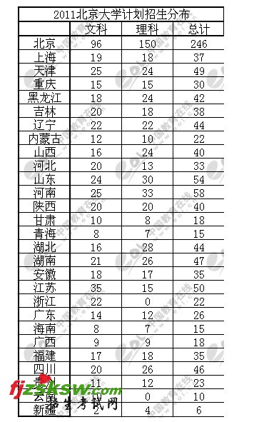 [图文]北京大学2011全国各地招生计划