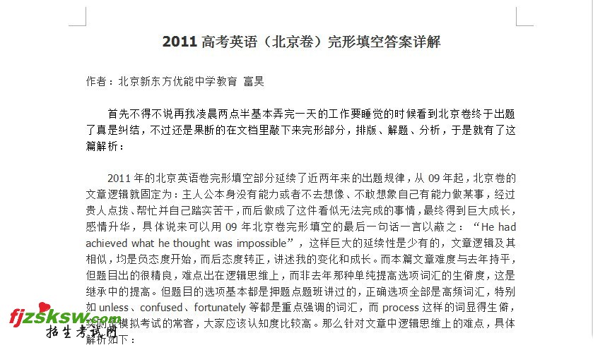 [组图]2011北京高考英语卷完形填空答案详解