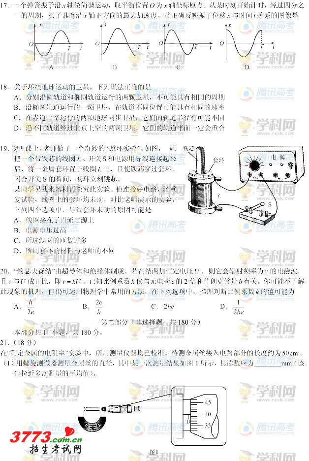 [组图]2012年北京高考理科综合理综试卷发布