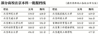 昨天,记者从十所部属及市属高校获悉各自在京一批次调档线。