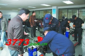 北京劳动保障职业学院的学生正在进行汽车维修实训。