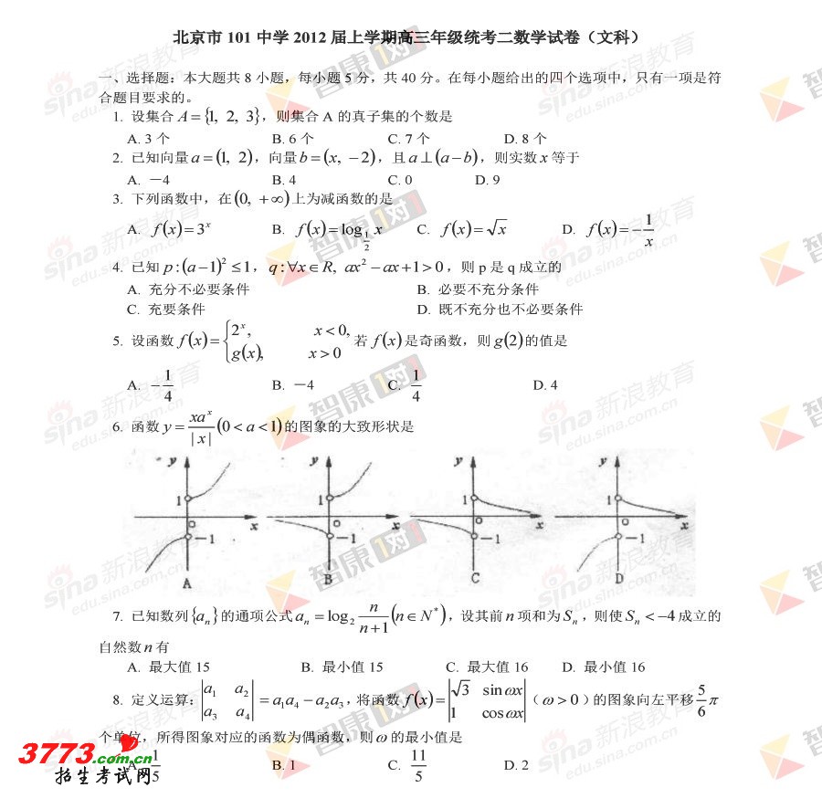 [组图]北京101中2012高三上学期期中考试文科数学试题答案