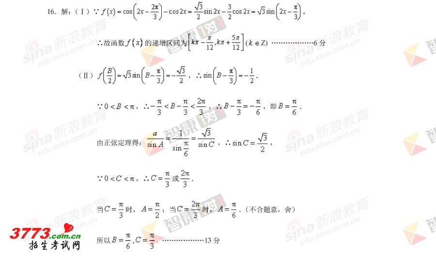 [组图]北京四中2012高三上学期期中考试理科数学试题答案