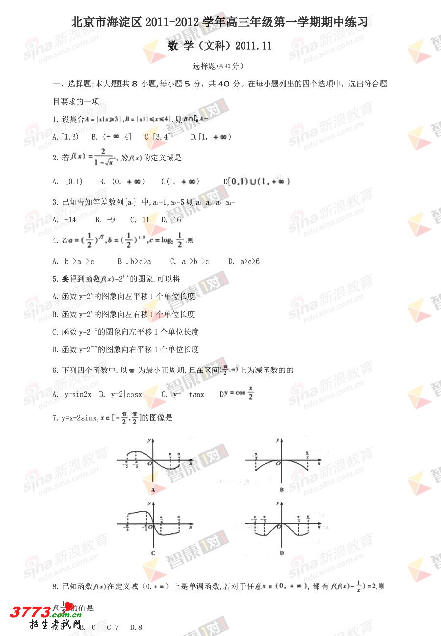 [组图]北京市海淀区2012年高三上学期期中数学文科试卷答案
