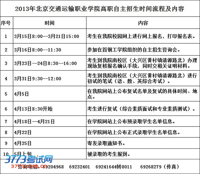 2013年高招北京自主招生工作将于3月中上旬正式启动,报考2013年高考的北京考生请关注我院信息,已参加2013年高考报名的(高中及中职的)北京考生均可报名。
