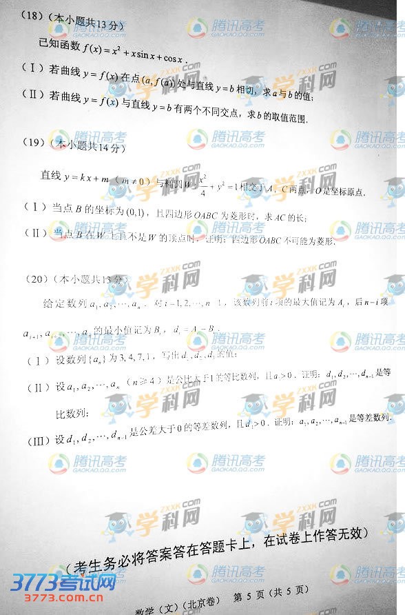 [组图]2013北京高考文科数学试题及答案